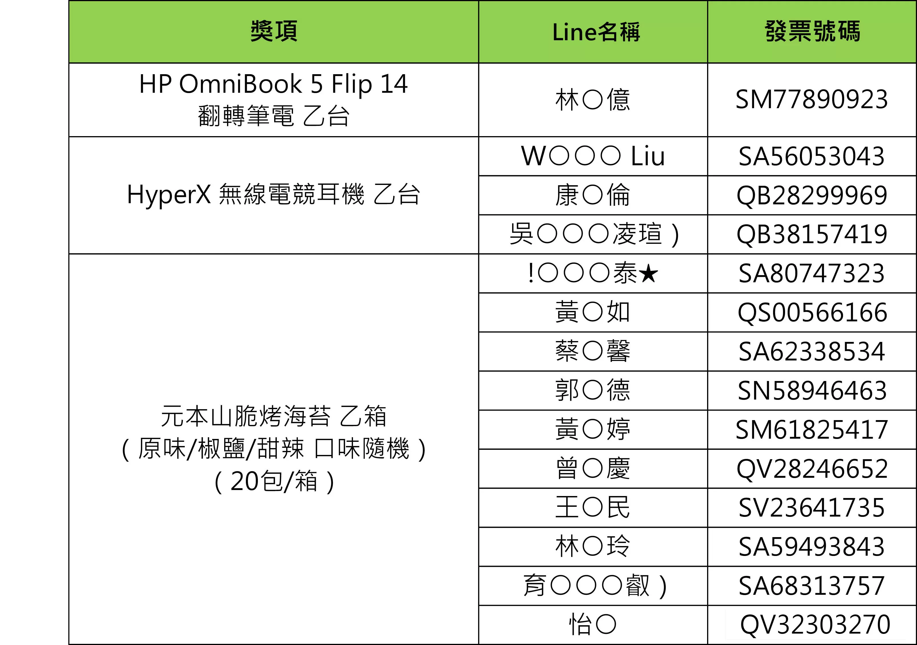 ※請於2025/9/25前,將填妥之領獎信函及身分證正反面影本,以掛號方式寄至主辦單位委託承辦兌獎作業公司(傑思愛德威媒體股份有限公司『110058 台北市信義區忠孝東路五段510號18樓 元本山發票登錄 活動小組收』)。