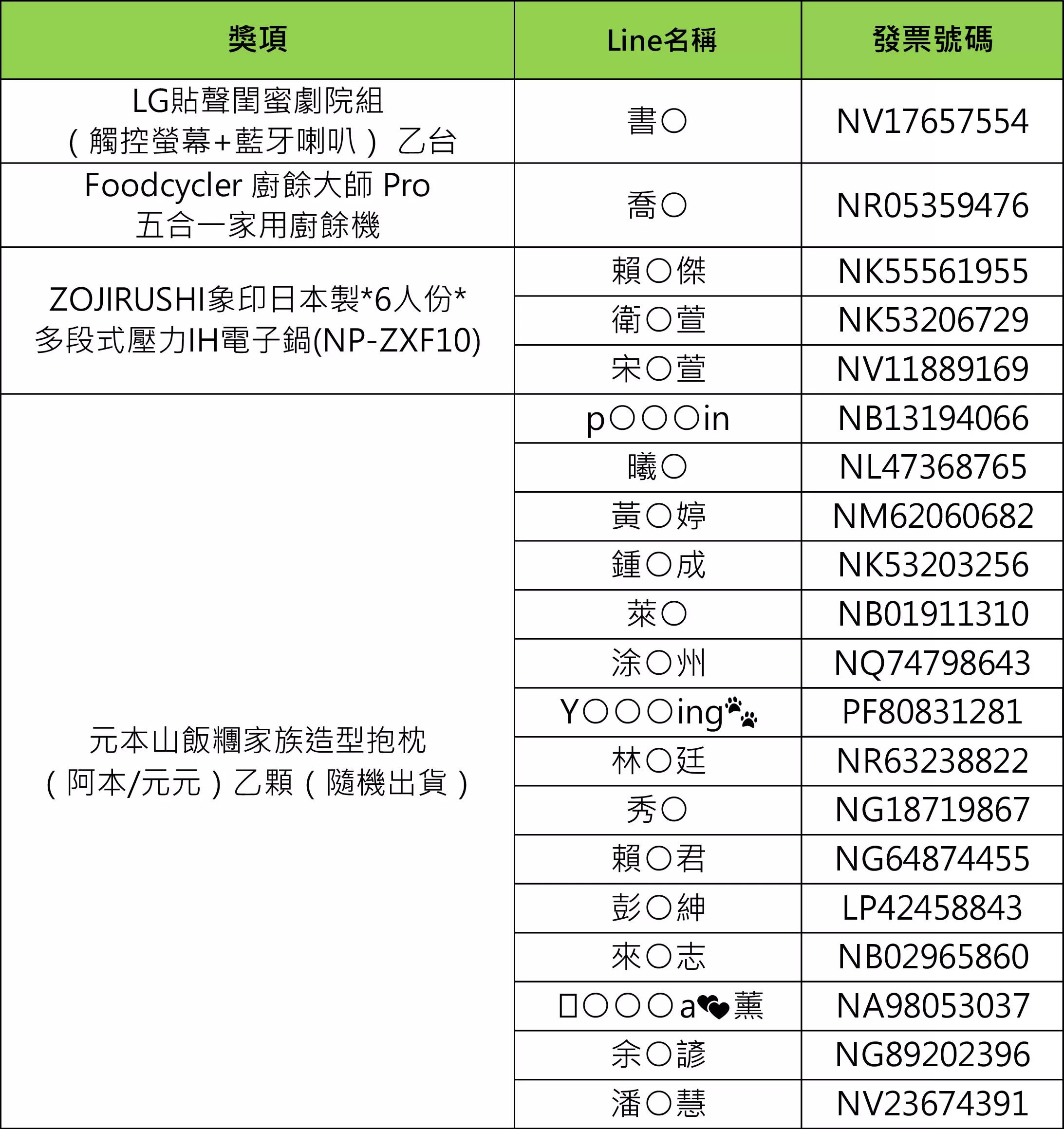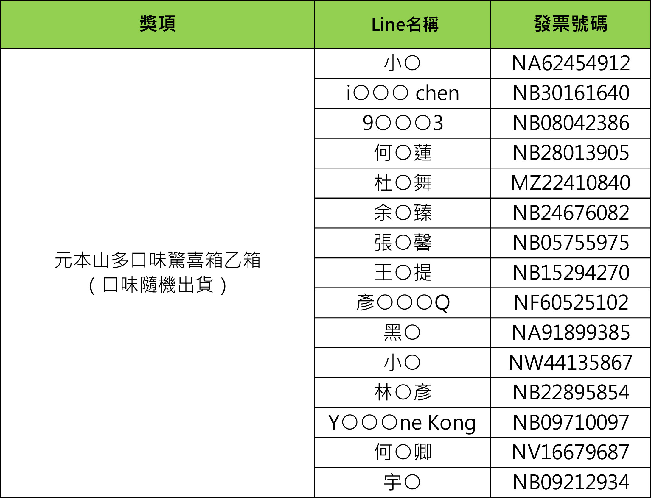 元本山元氣滿滿吃飯趣中獎名單出爐囉~趕快來看看自己有沒有中獎吧!