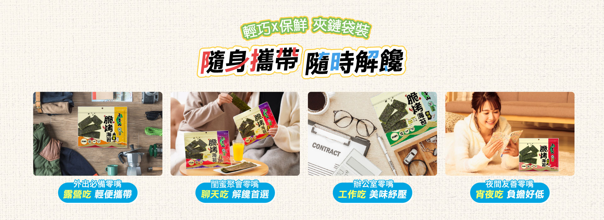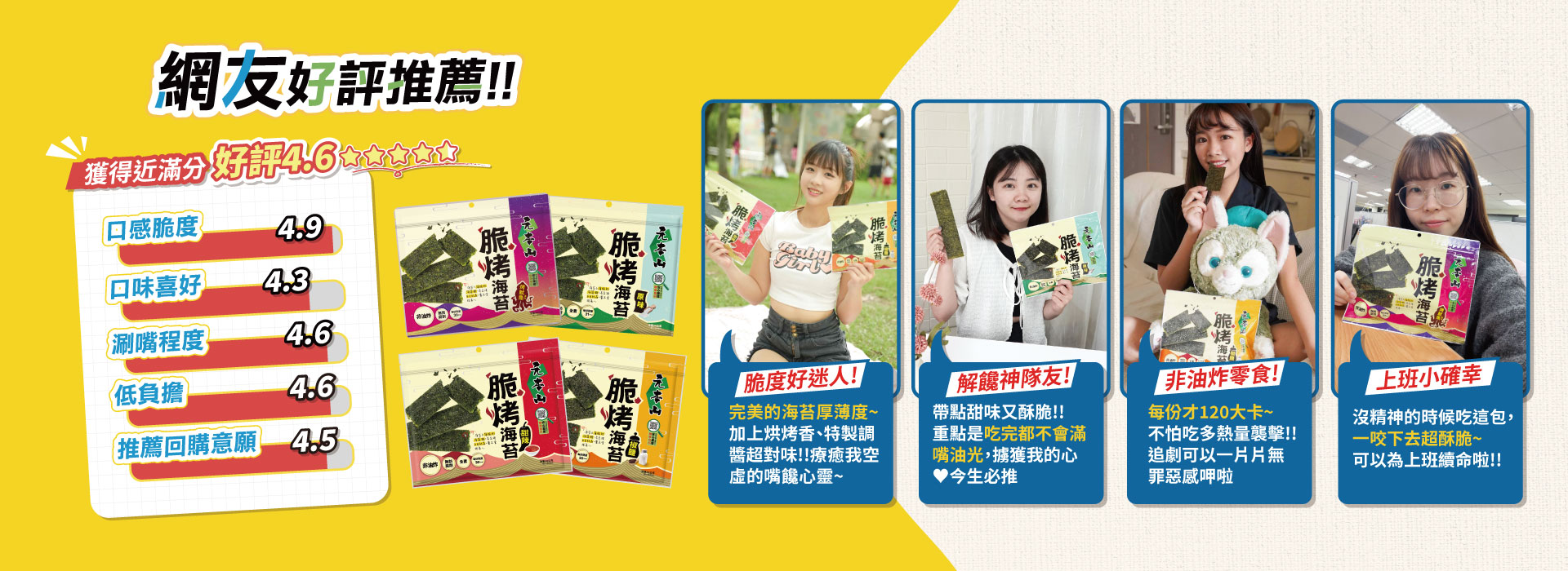 海苔原料從海中採收後,先將海苔乾燥,製成一片一片的大張海苔;挑出品質好、顏色翠綠、完整無破洞且透光度佳的高品質海苔原料,進入元本山的工廠之後,會經過烘培、調味,最後經過裁切及包裝,大家常見的元本山海苔就大功告成了!元本山海苔在1990年時通過了政府的優良食品規範認證(GMP),品質有國家保證,吃起來當然更放心!